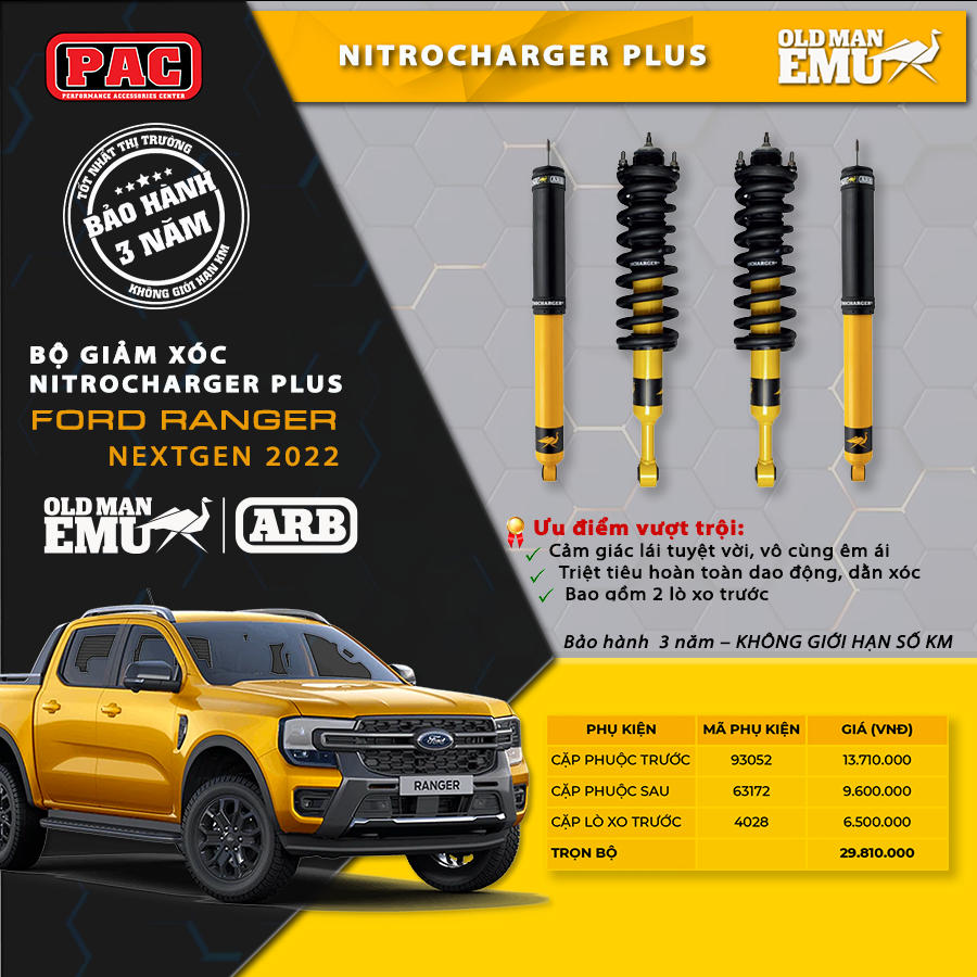 Bộ giảm sóc NITROCHARGER plus (2 LÒ XO trước) – Ford Ranger Nextgen sau 2022