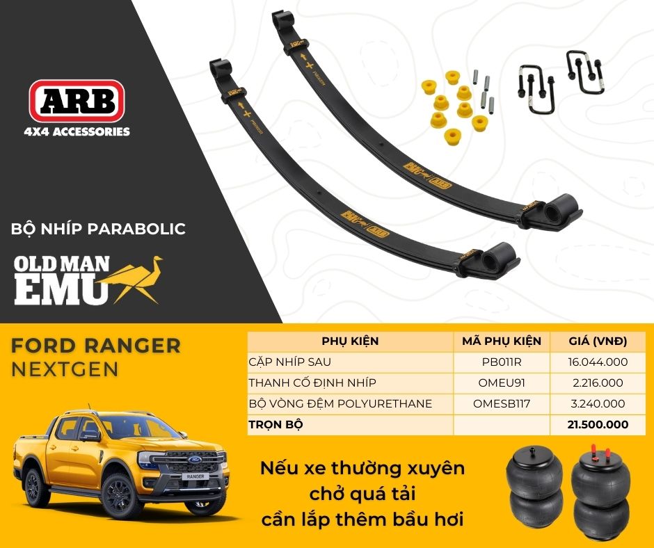 Nhíp Parabolic ARB mang lại sự cân bằng giữa tải trọng, độ bền và sự thoải mái, đặc biệt cho xe off-road và chở hàng nặng. ????????