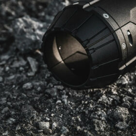 • Thiết kế Độc đáo: Ốp ống xả mang phong cách cực kỳ hầm hố và công nghiệp, gợi liên tưởng đến miệng phun của động cơ phản lực hoặc nòng súng. Thiết kế này có các đường vân, rãnh và các chi tiết giả bulông mạnh mẽ, tạo ra một vẻ ngoài công nghệ cao và chiến thuật (tactical) cho phần đuôi xe.