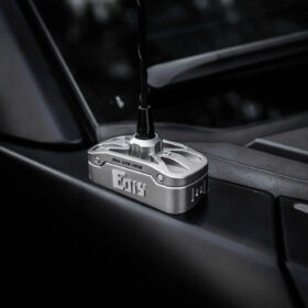 - Thiết kế Chuyên biệt: Sản phẩm có kiểu dáng vuông vắn, hầm hố và “tactical” (chiến thuật), tạo sự khác biệt rõ rệt so với đế ăng-ten tiêu chuẩn của xe. Với chất liệu hợp kim nhôm kỹ thuật cao cấp và lớp hoàn thiện đen mờ, nó không chỉ bảo vệ khu vực lắp đặt ăng-ten mà còn tăng thêm tính thẩm mỹ mạnh mẽ cho phần ngoại thất xe.