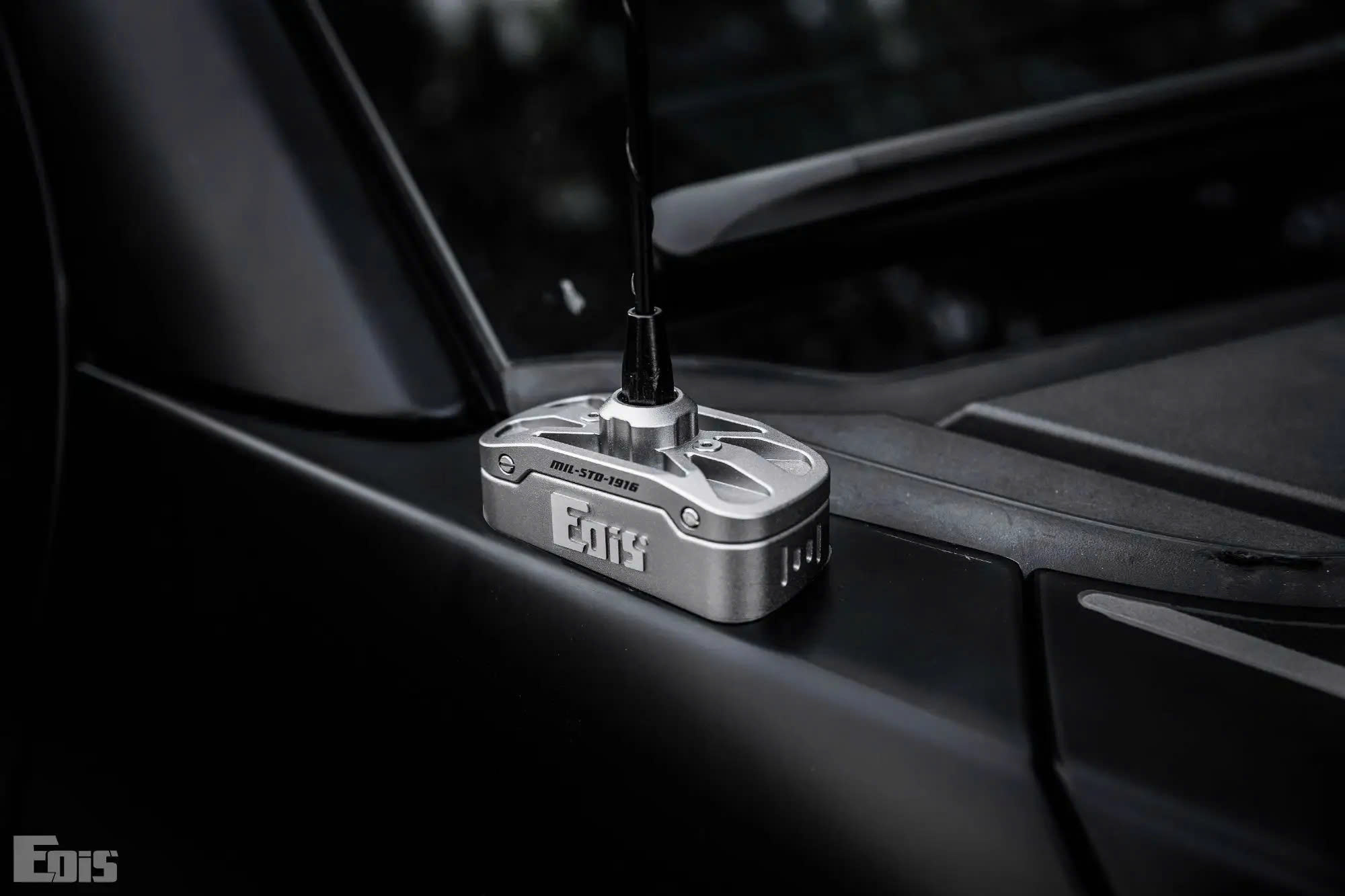 - Tiêu chuẩn “MIL-STD-1916”: Tương tự các phụ kiện khác của Eois, đế ăng-ten này có dập nổi dòng chữ “MIL-STD-1916” hoặc tương tự. Chi tiết này là lời khẳng định về độ bền bỉ, khả năng chịu đựng và chất lượng chế tạo theo tiêu chuẩn cao, rất phù hợp với môi trường khắc nghiệt mà chiếc Raptor thường xuyên hoạt động.